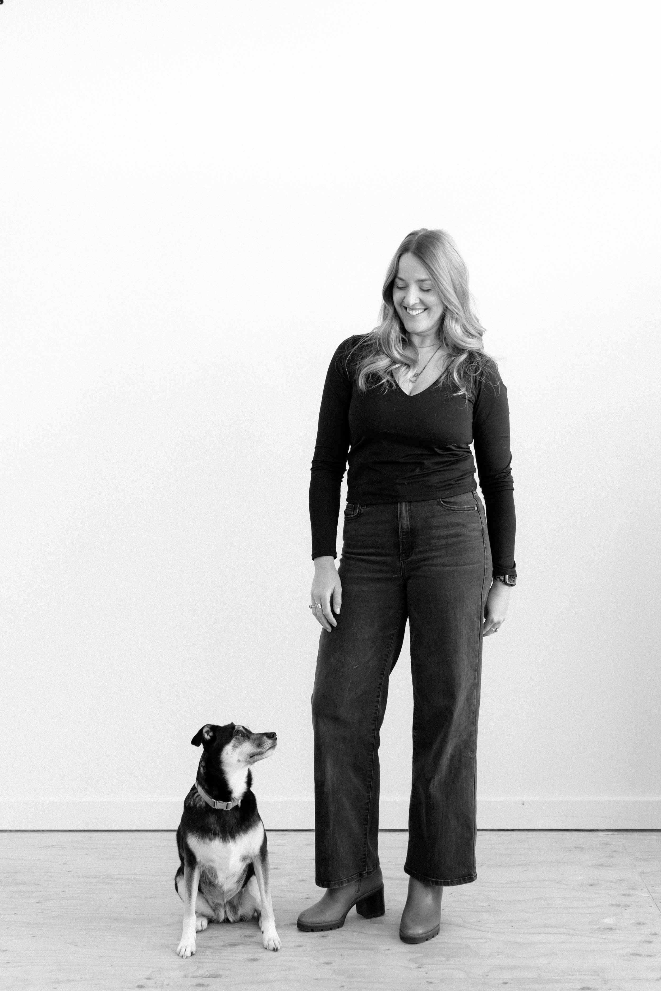 You can find her around town snowboarding, mountain biking, or hiking around with her pup, Dottie.